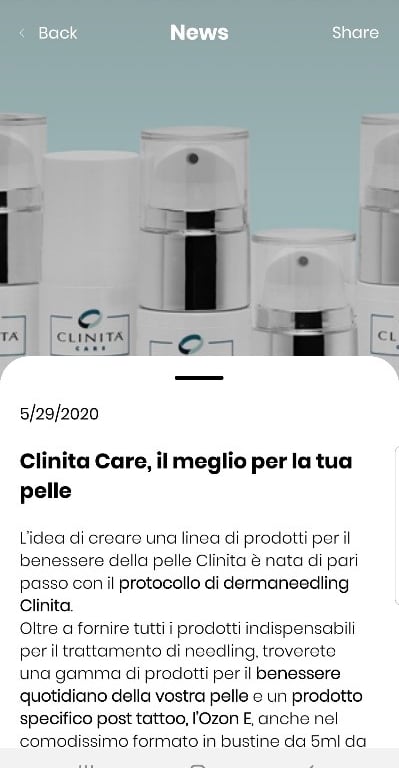 The app and website clinita.it is dedicated to a customer who presents his fully digitalized catalog of services.